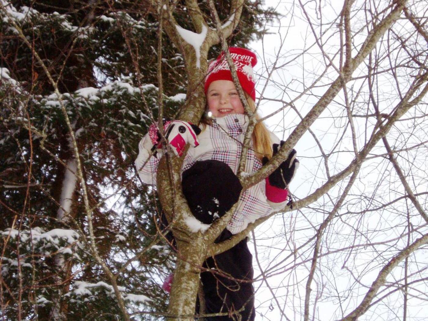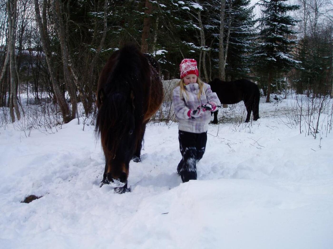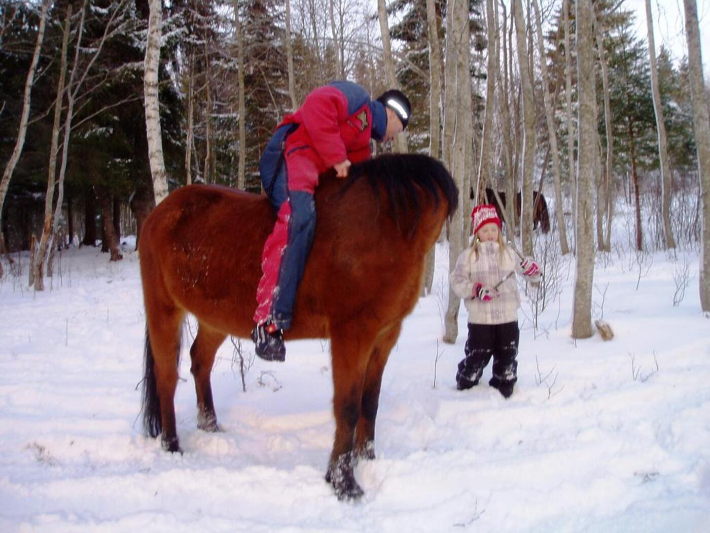 Klatre i trær, leke og krabbe i snøen, kikke etter spor sammen med hestene og ikke minst hunden som gjerne ville fulgt sporet helt frem.
