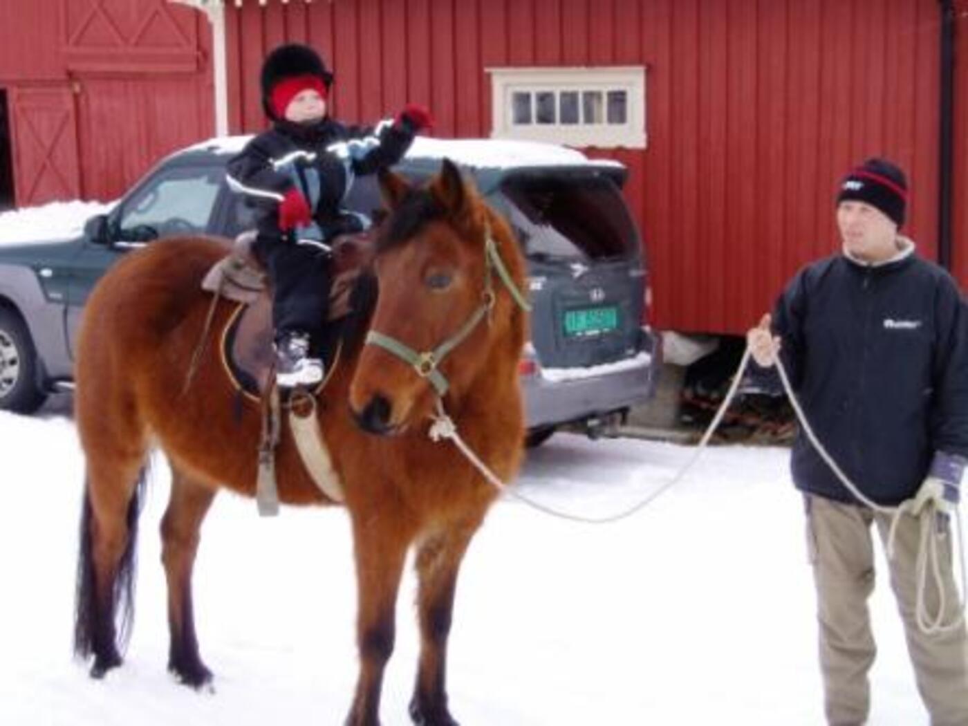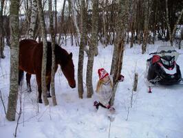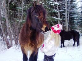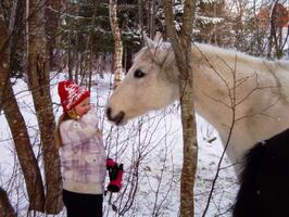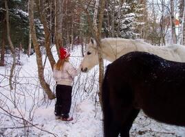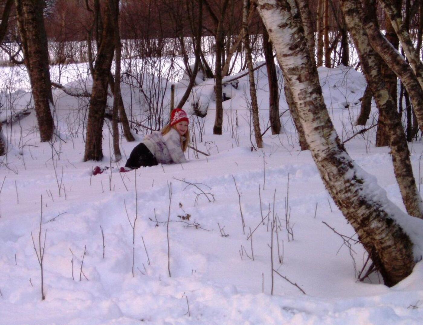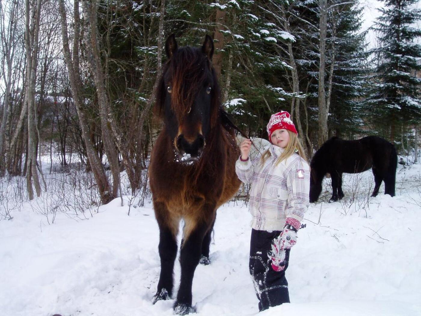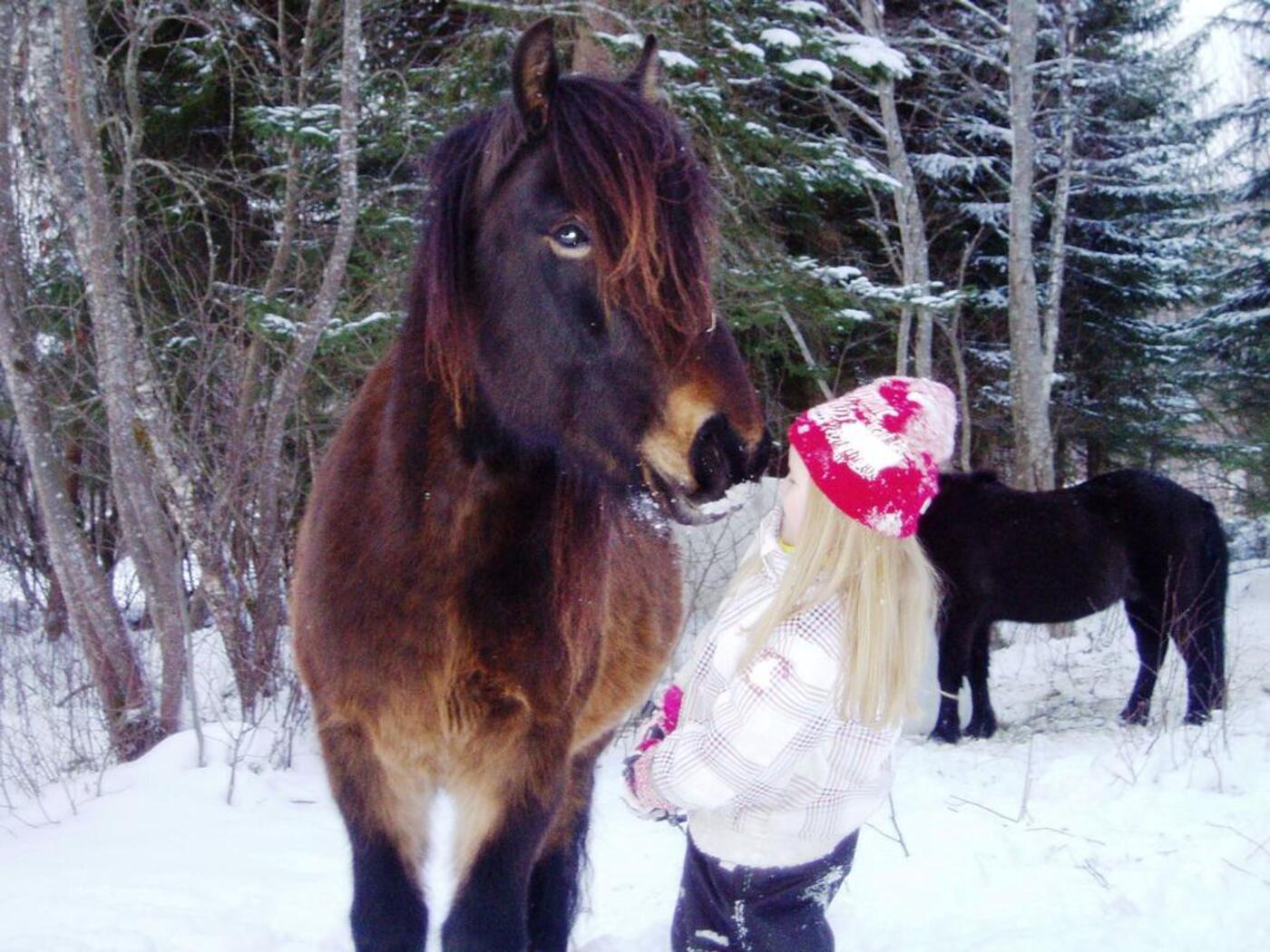 Klatre i trær, leke og krabbe i snøen, kikke etter spor sammen med hestene og ikke minst hunden som gjerne ville fulgt sporet helt frem.