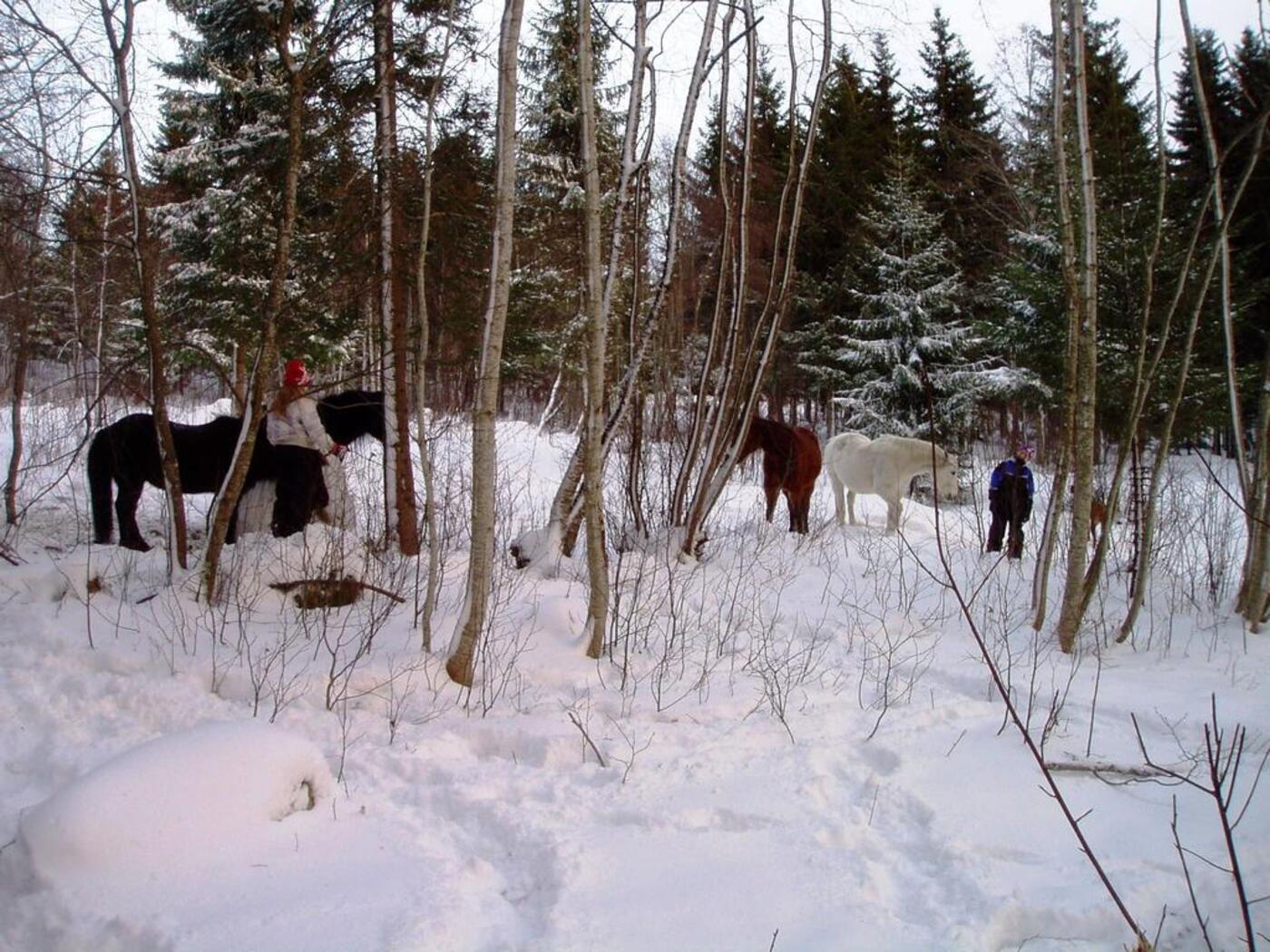 En tur i skogen 4. juledag, mennesker - hester - hund - en katt, som ble med et stykke, men ikke helt frem - rådyr - harer - og masse fugler - og muligens andre dyr vi ikke så.... - kanskje nissen? Jak Nilsson hadde iallefall nisseknuter i manen :-)